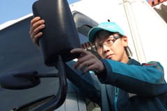 - 出勤して制服に着替えたら、点呼・アルコール呼気チェックをして、配送するコースのセッティングを行い、商品倉庫のゲートに車をつけて、配送する商品をお届けするコースのセブン-イレブン各店舗ごとに振り分けて積み込む。降ろす順番を考えながら積み込むことが大切。